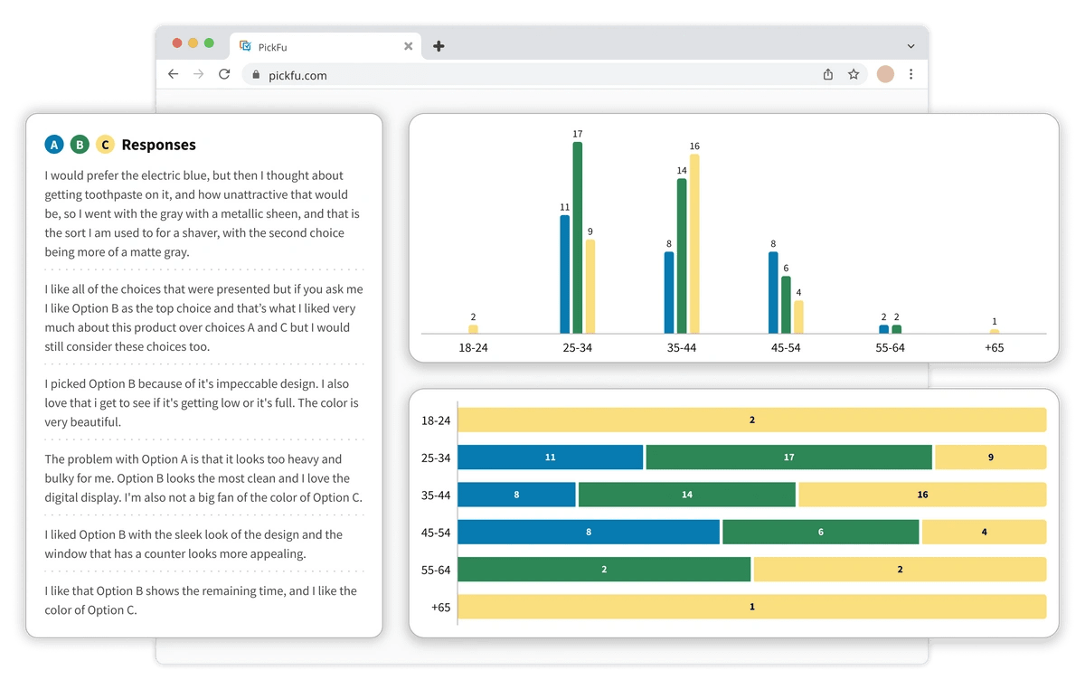 I’ve never had a way to get immediate feedback from real potential buyers like I can with PickFu. It makes a huge difference to our product listings’ rankings and conversions.