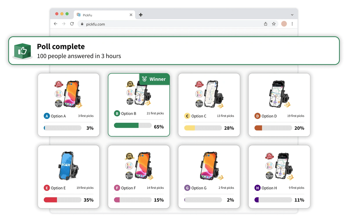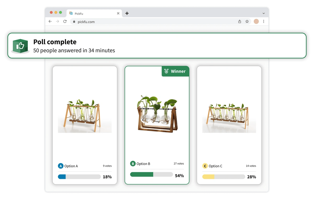 Whether a visitor hits the Buy button or the Back button means everything. So across every marketplace, top sellers and brands trust PickFu to ensure that their online stores and their product stories resonate with shoppers.