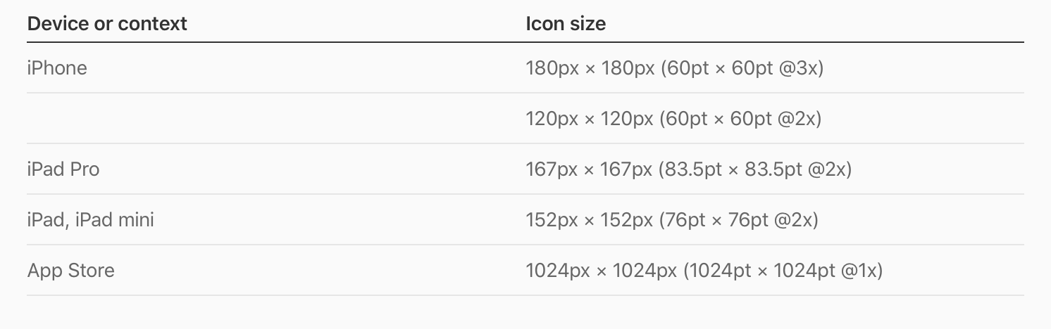 - Always follow Apple and Google’s app store icon size requirements and guidelines. You can find Google Play’s size requirements here and the Apple App Store’s here. Keep in mind that you’ll need to create several versions of your app icon for each store. Also note that even though the App Store on iPhone features rounded corners, you should submit all your app files in square form. The Apple system will round off corners for you.