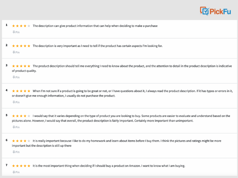 Don’t just take our word for it, though. We asked another 100 respondents to rank how important Amazon product descriptions are on a scale of one to five: