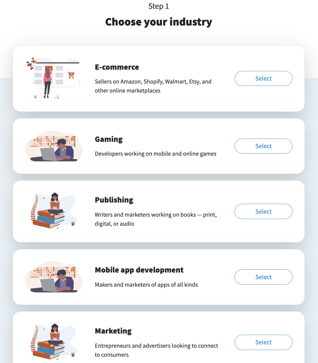 Let’s go this route and select “E-commerce” as your industry: