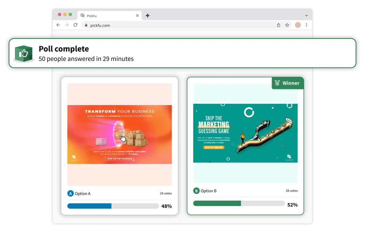 Si tus clientes siempre tienen la razón, entonces asegúrate de hablar con tus clientes antes de tomar una decisión importante. Sin importar el tamaño de tu negocio, PickFu te puede ayudar a perfeccionar tu mensaje de marketing.