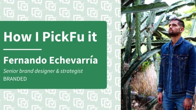 Fernando Echevarría, una potencia creativa en el agregador de e-commerce Branded, hace malabares a diario: diseña identidades visuales innovadoras, conduce investigaciones de mercado exhaustivas y toma decisiones de branding estratégicas. Únete a nosotros mientras profundizamos en los insights de Fernando sobre cómo aprovechar PickFu para mejorar el desarrollo de la marca.