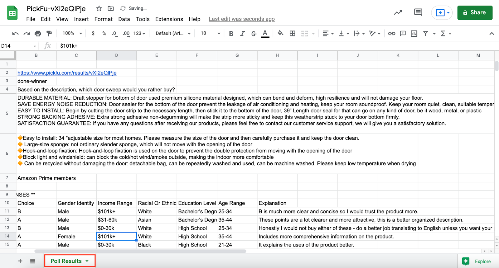 And just like that – with little over an hour to run the poll, and twenty minutes to analyze – I have actionable consumer insights about my Amazon product descriptions.